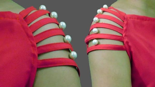 Stylish sleeves design with pearls stitched to it