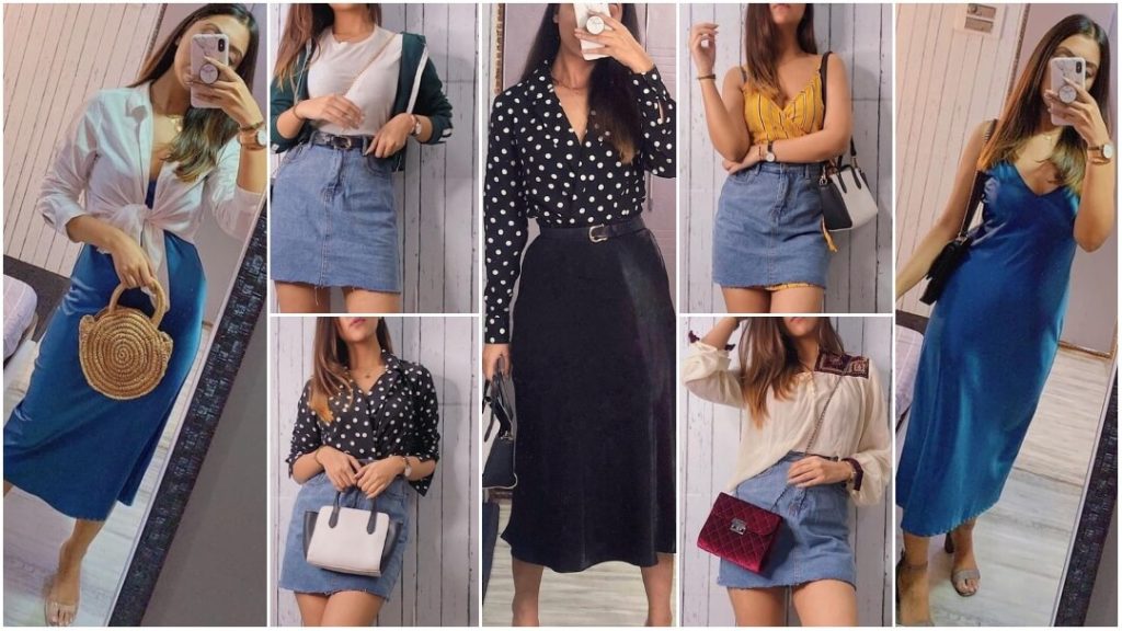 Farheen Panjwani wore a pleated dress in 6 different ways from which you can choose the style you would love to carry. Apart from wearing it normally, she wore it with a knotted t-shirt on top, a turtle neck top, a blazer, and a sweater. Pick the style that matches your sense of fashion and rock it as Farheen does in every outfit. Accessorize the outfits like hers or add a personal touch to them by choosing whatever suits you.