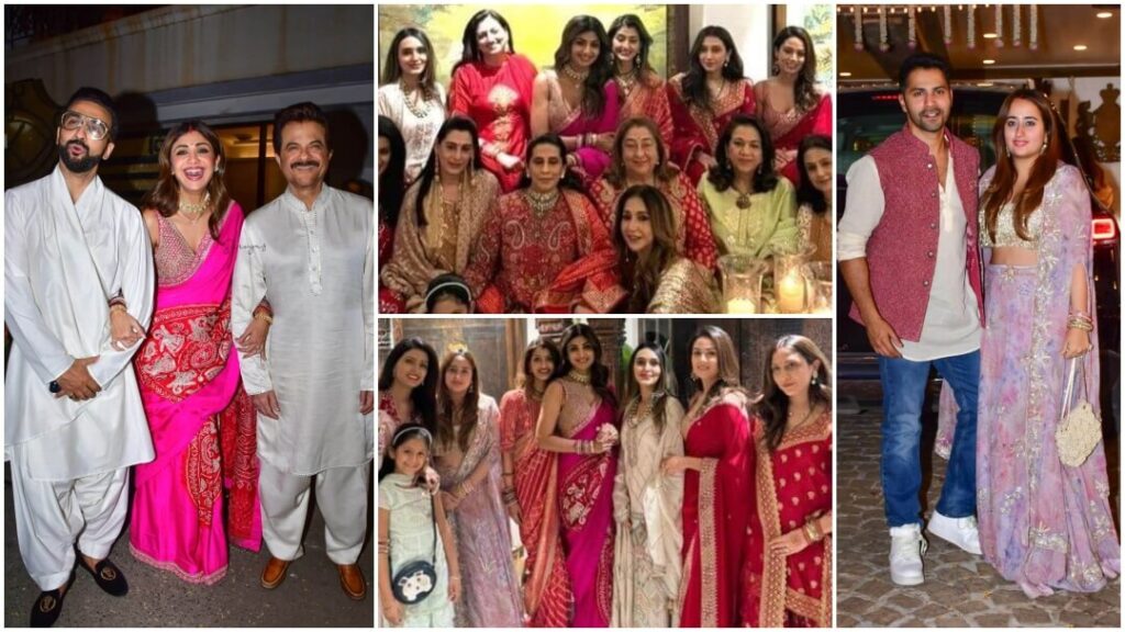 <p>Celebrities gathered at Sunita Kapoor&#8217;s house to celebrate Karwa Chauth 2023. Shilpa Shetty, Mira Rajput, Natasha Dalal, and other stars were seen performing rituals during the occasion. The festival is celebrated by married Hindu women who fast from sunrise to moonrise for the safety and long life of their husbands. The stars looked stunning as they donned traditional Indian attire for the occasion. It was an evening of joy and celebration for the stars.</p>