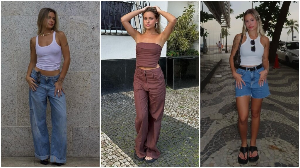 Manoela embraces a classic and casual style in a white tank top paired with denim bottoms. This effortlessly chic combination is perfect for a relaxed day out or a casual gathering with friends. The simplicity of the outfit allows her natural beauty to shine, making her look effortlessly cool and stylish.