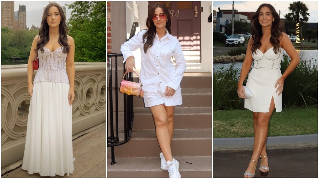 Embodying chicness and sophistication, Manu Canielas stuns in a white co-ord set. The matching top and bottom create a cohesive and polished look, while the crisp white color adds a fresh and timeless appeal. This ensemble is versatile and can be dressed up or down, making it a wardrobe staple for any fashion enthusiast.