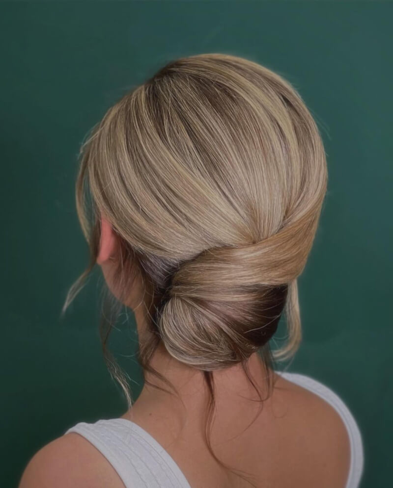 Opt for timeless elegance with an elegant wrapped low bun that exudes sophistication and class, perfect for a polished and refined appearance on the go.