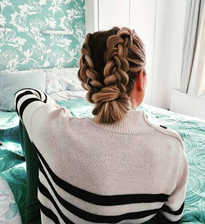 Gorgeous Thick Braided Baggy Bun Hairstyle