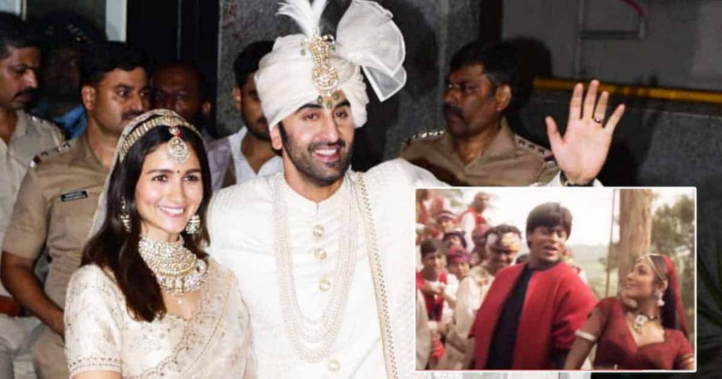 <p>There are a few unseen videos from the wedding celebration of Mr&;Mrs Kapoor that are taking over all the limelight on the internet. One of them is a dance video where this beautiful couple breaks the floor together on the very famous song &#8220;Chaiyaa Chaiyaa&#8221; from the movie &#8216;Dil Se&#8217;. The couple twinned their look with matching red outfits and look astonishing together. Ranbir goes for a white Kurta -Pyjama paired with a red jacket, while Alia paired a beautiful red Anarkali suit with a Maang -Tika. The couple look so gorgeous together and performed the hook step of the song with full love and energy.</p>