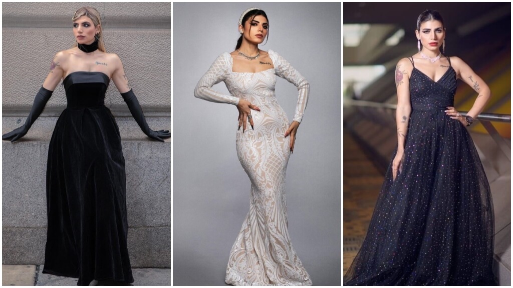 Step into the world of glamour and style with Rania Younis as we explore her stunning fashion choices. From a black shimmery off-shoulder long gown to a chic black high-neck top paired with a short skirt, Rania effortlessly embodies elegance and sophistication. This fashion journey and discover how she captivates with her unique sense of style. Get ready to be inspired and let your inner fashionista shine!